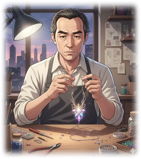 Pabinciは、40年以上にわたりジュエリー制作に情熱を注いできた職人の手から誕生しました。私たちは単なるジュエリーを超えて、金属に芸術的な感性と物語を吹き込む創造的な作品づくりを追求しています。